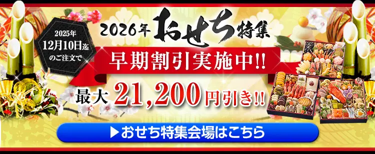 理由は明確で、最大 21,700円割引 や 早割特典 、 送料無料 に加え、 口コミ評価4.5以上 や有名料亭監修のおせちなど、安心して選べる商品が揃っています。